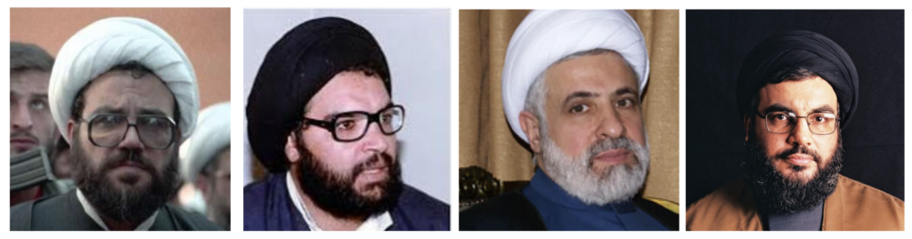 da sinistra a destra: Subhi Al-Tufayli, Abbas Al-Musawi, Naim Qassem, Hassan Nasrallah